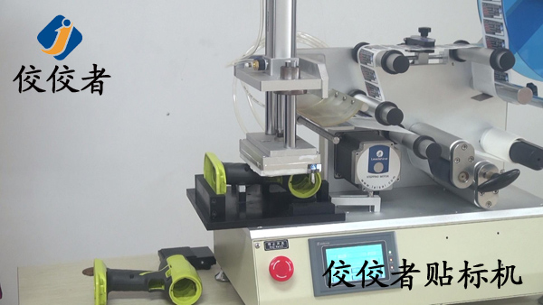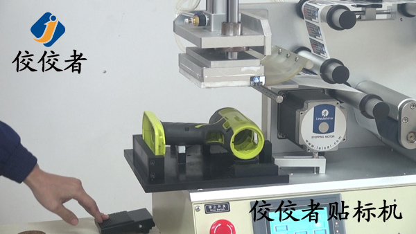 手電鉆貼標機應用比較廣泛,像內存卡、小黑片、鑰匙扣,甚至小包裝盒也是可以貼的,不過一般小包裝盒子的話,產(chǎn)量基本比較大,我公司作為負責任的貼標機廠家,一般會建議客戶選擇全自動貼標機。下面來介紹手電鉆貼標機的詳細流程,這個流程相對于全自動貼標機來說還是比較簡單的,首頁把手電鉆放到貼標機的治具(固定產(chǎn)品用的模具,可根據(jù)產(chǎn)品的不同進行定制)上面,如下圖: