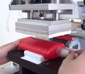 此外,若客戶產(chǎn)量不大,可以采用半自動貼標(biāo)機進行貼標(biāo),這時需要一個面貼好再貼另外一面。針對產(chǎn)量不是很大的客戶是非常適合的,在滿足改善生產(chǎn)質(zhì)量的同時節(jié)約投入成本。如下圖: