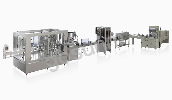本生產(chǎn)流水線由自動(dòng)沖瓶機(jī)、常壓灌裝機(jī)、自動(dòng)旋蓋機(jī)燈檢機(jī)、套標(biāo)機(jī)縮標(biāo)機(jī)、熱收縮膜打包機(jī)及成品輸送機(jī)等系列產(chǎn)品組成。本機(jī)沖洗、灌裝、封口、套標(biāo)、收縮包裝等主要關(guān)鍵部位均采用優(yōu)質(zhì)不銹鋼材料制成,具有工藝先進(jìn)、系統(tǒng)完善、性能可靠、使用方便等特點(diǎn)。