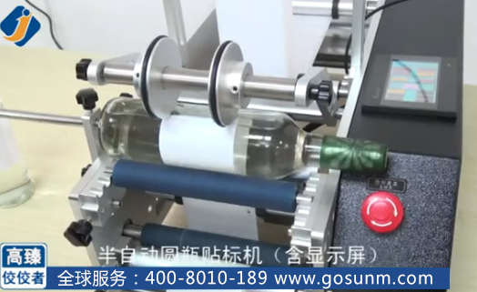 正因為半自動圓瓶貼標機含有顯示屏,各功能能夠一鍵切換,因此它的操作過程也比較簡單:首先把標簽放好,接通電源后,人工將產(chǎn)品放入機械對應(yīng)口,機械檢測到產(chǎn)品,機械將在適當時刻送出標簽貼附在產(chǎn)品設(shè)定位置上,然后再把產(chǎn)品取出來,整個工作就完成了。