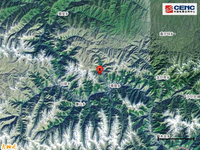 震中附近人口不是特別密集,震中距最近的草登鄉(xiāng)約6公里。