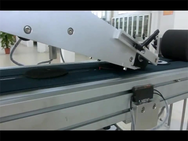平面不干膠定位貼標(biāo)機(jī)貼標(biāo)的過程為:當(dāng)傳感器發(fā)出貼標(biāo)物預(yù)備貼標(biāo)的信號后,貼標(biāo)機(jī)上的驅(qū)動輪滾動。因?yàn)榫硗矘?biāo)簽在裝置上為張緊狀態(tài),當(dāng)?shù)准埦o貼剝離板改變方向運(yùn)行時(shí),標(biāo)簽因?yàn)樽陨聿牧暇哂幸欢ǖ膱?jiān)挺度,前端被強(qiáng)迫脫離、預(yù)備貼標(biāo)。此時(shí)貼標(biāo)物體剛好位于標(biāo)簽下部,在貼標(biāo)輪的作用下,實(shí)現(xiàn)同步貼標(biāo)。貼標(biāo)后,卷筒標(biāo)簽下面的傳感器發(fā)出休止運(yùn)行的信號,驅(qū)動輪靜止,一個(gè)貼標(biāo)輪回結(jié)束。