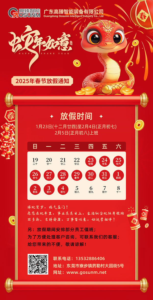 最后,廣東高臻智能裝備有限公司攜全體員工提前祝大家春節(jié)快樂(lè),闔家幸福!
