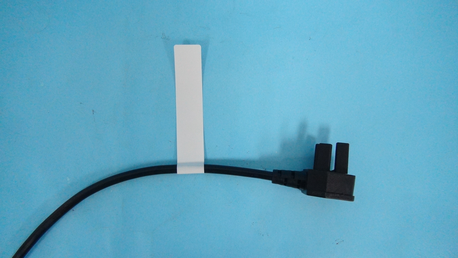上圖:樣品六.上圖中的這個圖片是在研發(fā)過程中,對三角插頭進(jìn)行多標(biāo)簽貼標(biāo)的樣品圖片.
