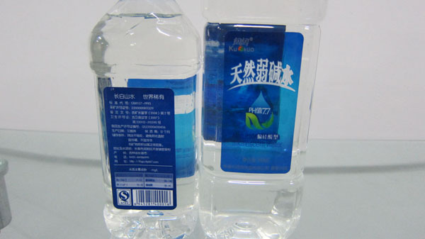 上圖是礦泉水瓶貼標機對圓瓶礦泉水瓶進行單側面貼標后的樣品圖片。