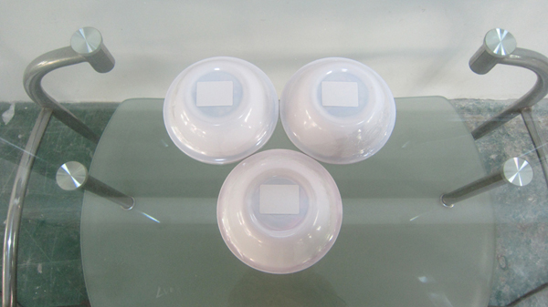 下圖是我公司全自動底部平面貼標(biāo)機對塑料碗進行底部貼標(biāo)的樣品圖片。