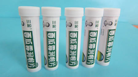 上圖都是我公司貼標機為三金藥業(yè)對三金西瓜霜潤喉片進行貼標的樣品圖片。可以發(fā)現(xiàn)的是,這個小圓瓶頭部的直徑比下面的直徑要大一點。貼這種類型的貼標機設備叫小圓瓶貼標機,全自動臥式圓瓶貼標機。