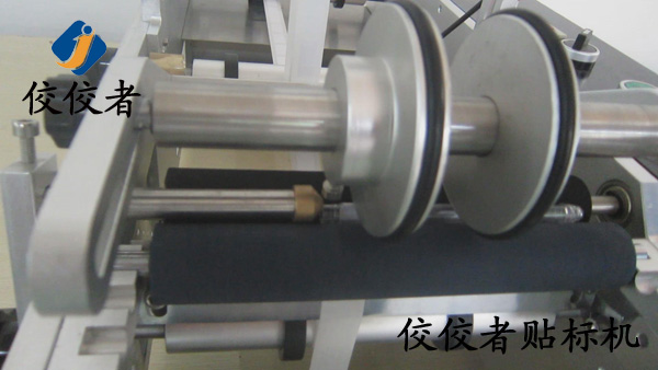 接著踩動腳踏開關(guān),設(shè)備出標,標簽粘在產(chǎn)品上后通過兩個覆標滾筒的轉(zhuǎn)動將標簽均勻平整的覆在產(chǎn)品上,如下圖: