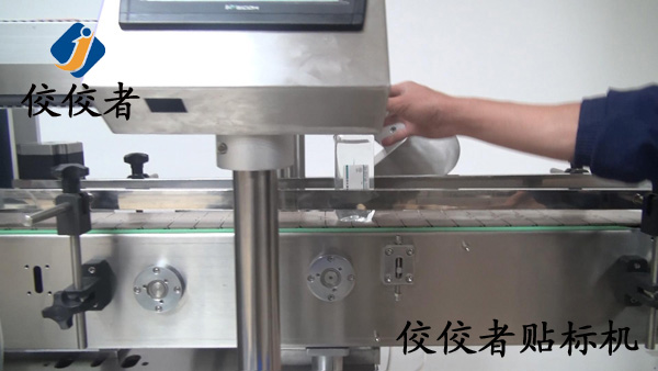 第二步:礦泉水導(dǎo)瓶完成后進(jìn)入壓頂機(jī)構(gòu)傳送至測(cè)物電眼,當(dāng)測(cè)物電眼檢測(cè)到產(chǎn)品時(shí)機(jī)器自動(dòng)貼標(biāo)。