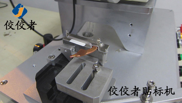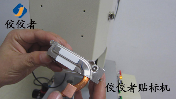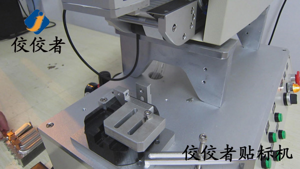 因?yàn)檫@款產(chǎn)品需要貼兩張標(biāo)簽。那么我們首先在散熱器上面貼上一張標(biāo)簽。當(dāng)我們貼好一張標(biāo)簽之后,再貼另外一張標(biāo)簽的時(shí)候,我們需要再一次調(diào)整模具的位置來(lái)實(shí)現(xiàn)另外一張標(biāo)簽的貼標(biāo)。所以我們建議客戶在同一個(gè)產(chǎn)品上面貼兩張標(biāo)簽的時(shí)候,盡力做到一張一張的批量貼標(biāo)。這樣可以有效增加生產(chǎn)率。